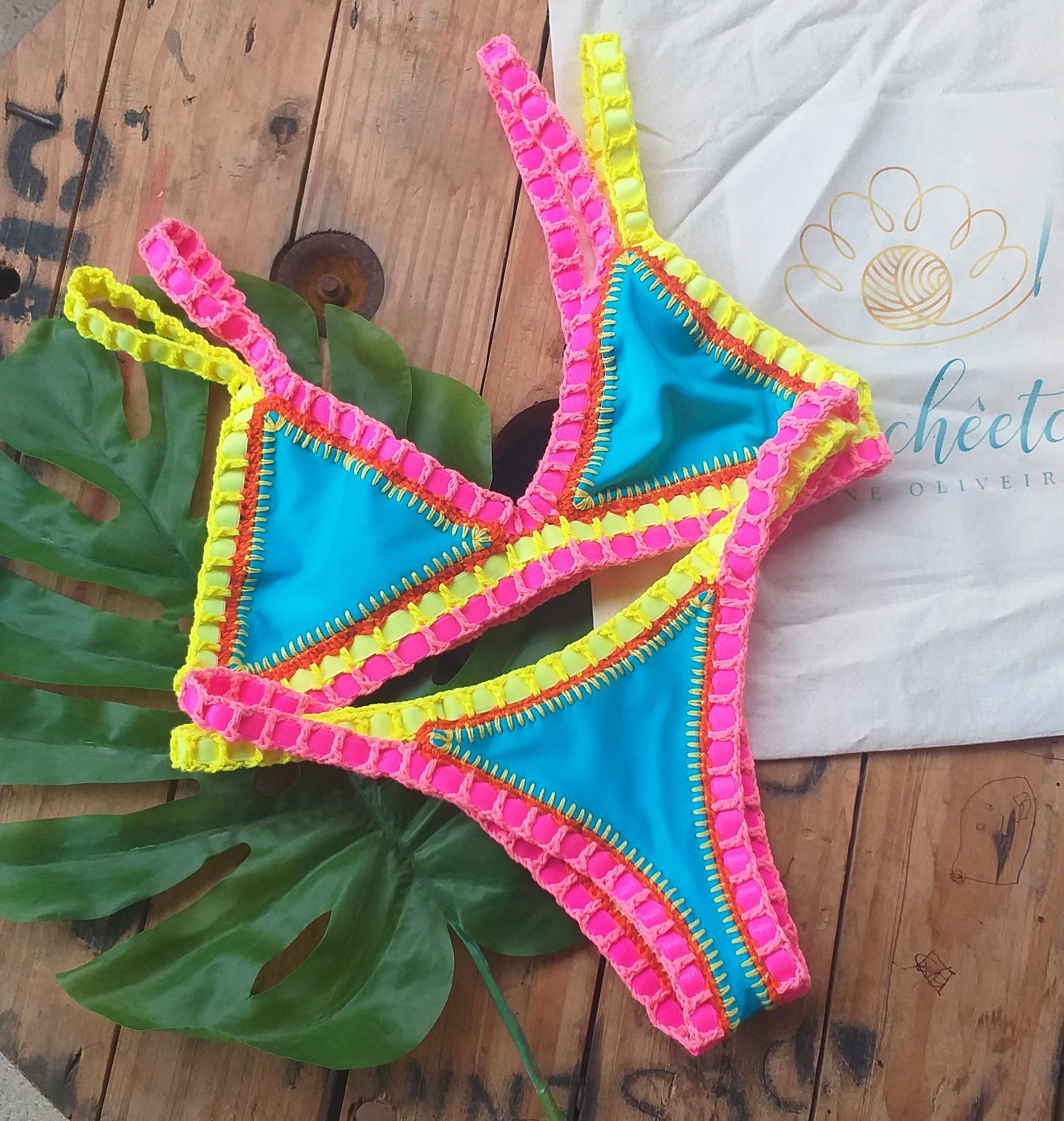 Nosso biquíni é feito à mão, usando a técnica do crochê. ❤️