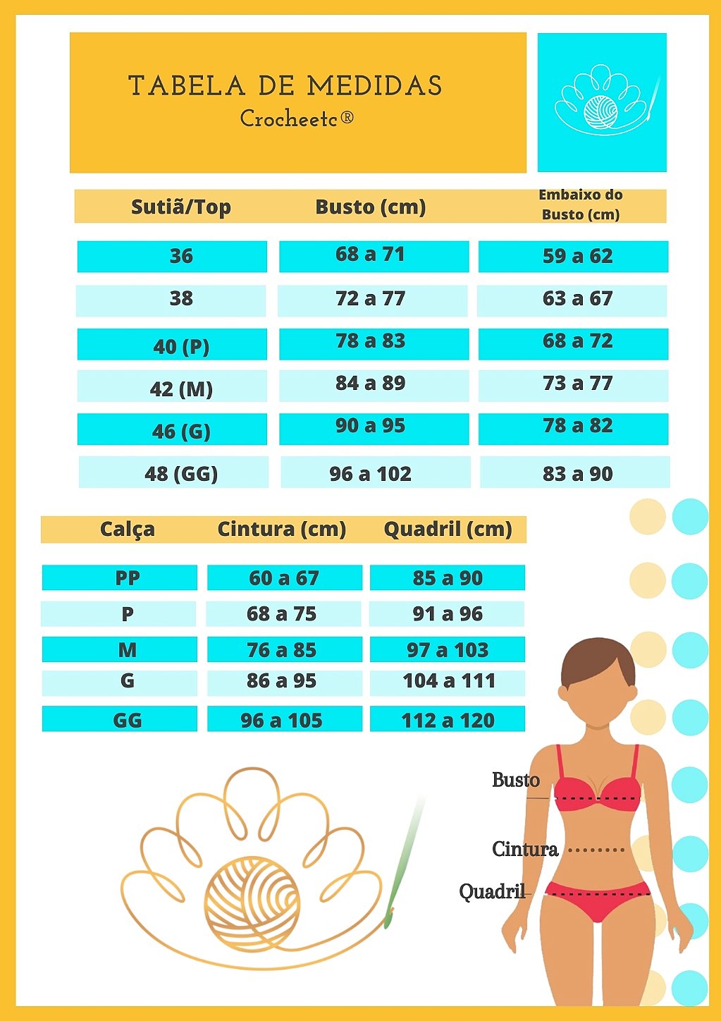 Composição: Crochê 100% algodão / forro 100% poliamida.