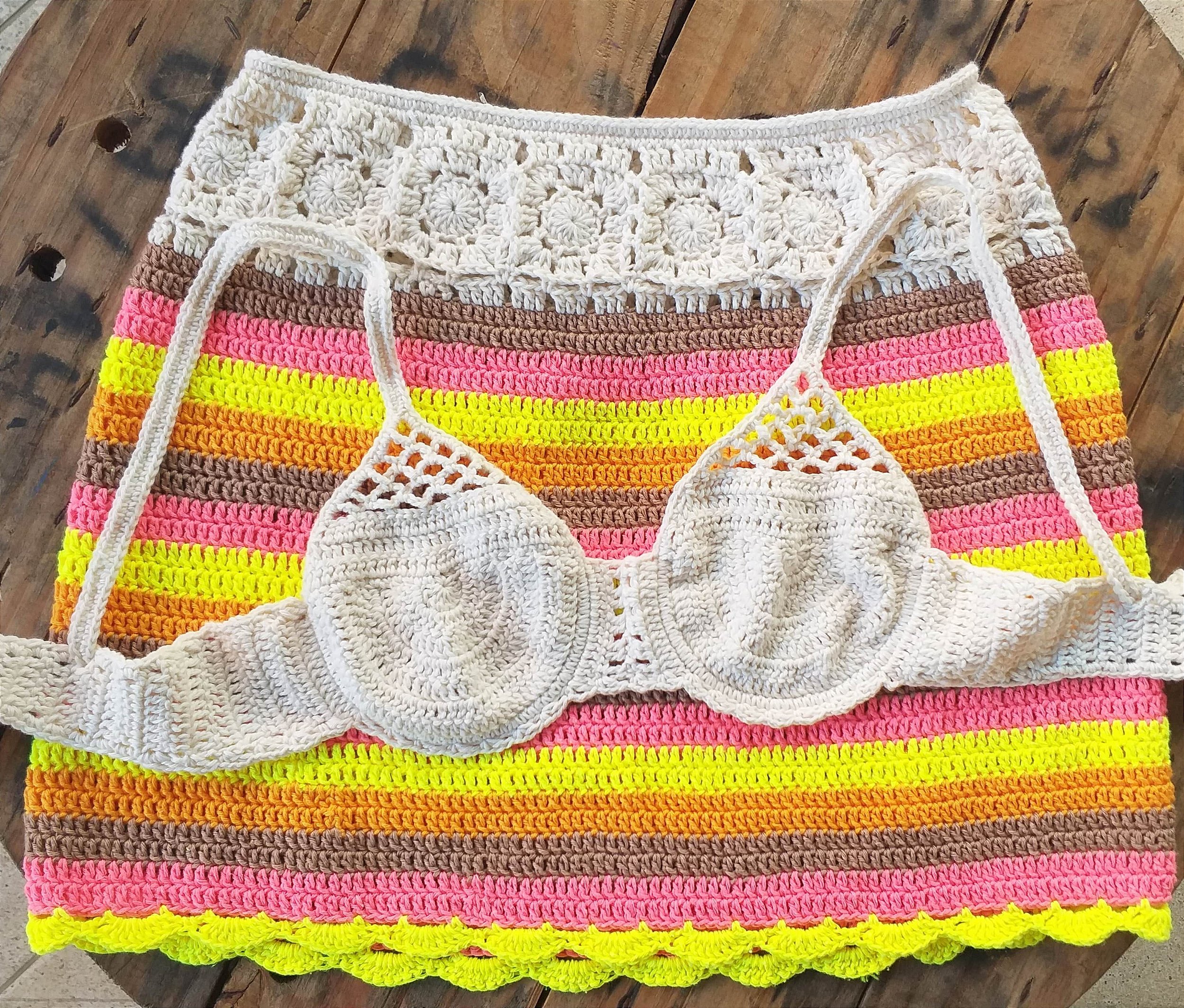 Nossa saia é feito toda à mão, usando a técnica do crochê. ❤️